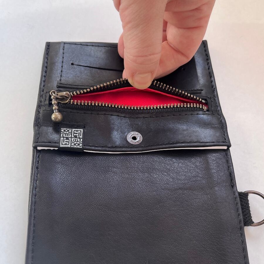 シャグポケットはビニール素材を使用しており、タバコの葉の乾燥を防ぎ、革の色や匂い移りを防ぎます。劣化の際はビニール張り替え修理が可能です。