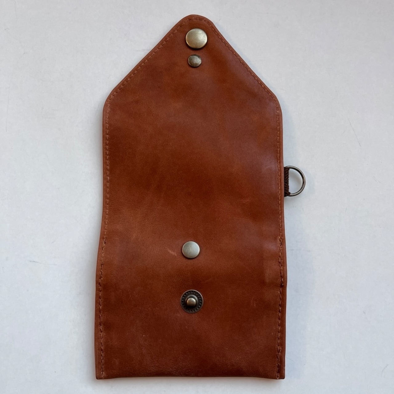 外側に使用している革(モストロ)は、植物タンニンでなめしたヌメ革を染料で染め、一枚ずつ手作業でワックスを塗り込んだレザーです。使い始めは白っぽい表情ですが、ワックスが内部に浸透するにつれ艶となめらかさが増し、経年で色が深まり唯一無二の風合いへと育ちます。