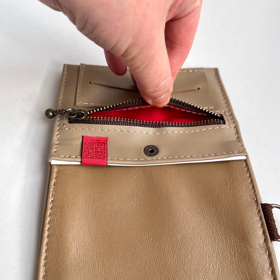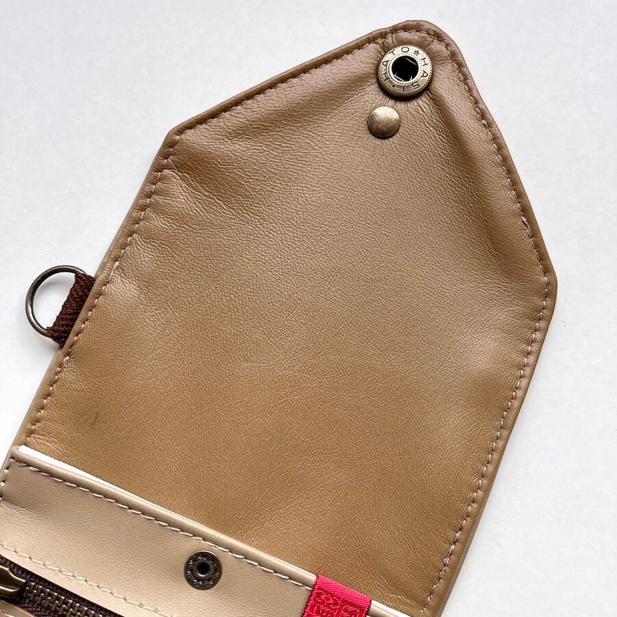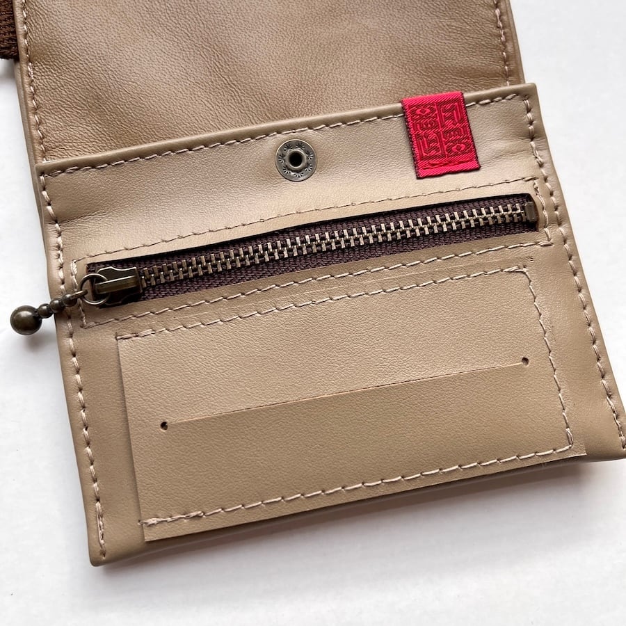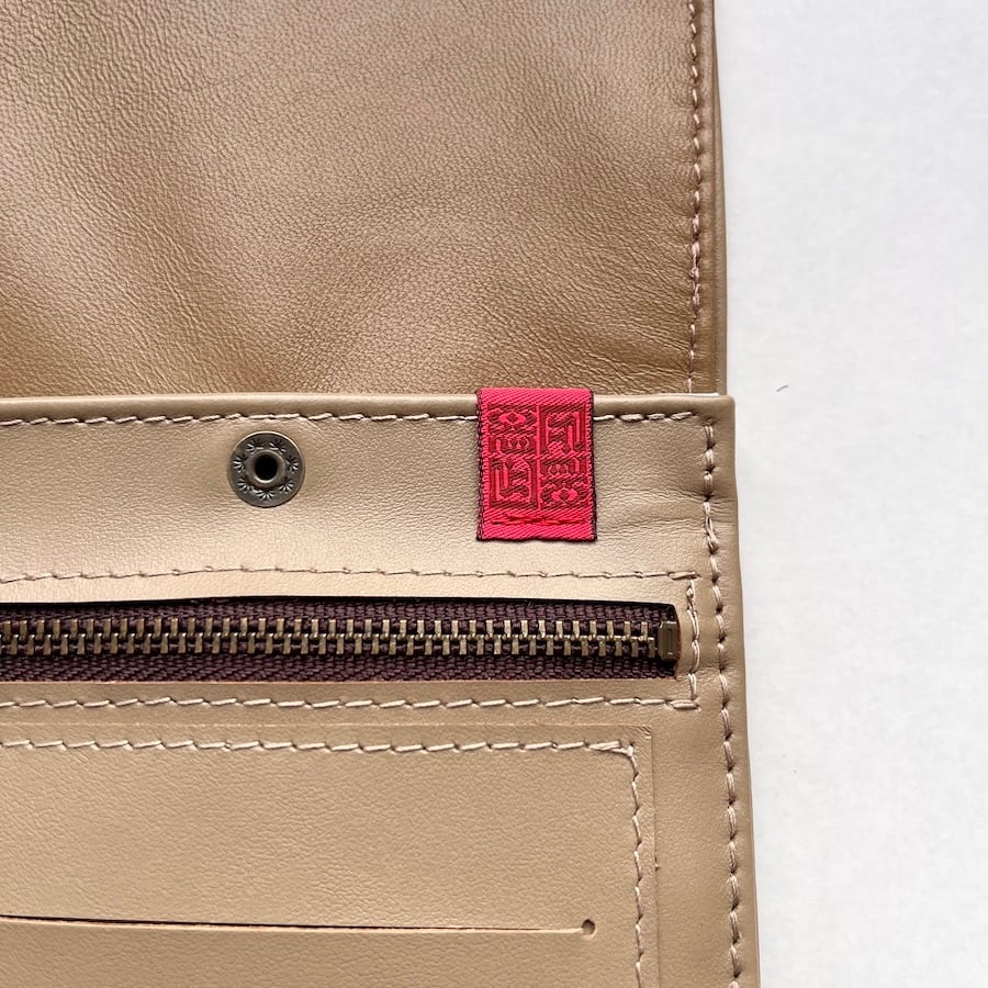 外側に使用している革は、イタリア産牛クローム革「エリート」です。滑らかでキメ細かい上品な質感と鮮やかな発色が魅力の革で、色が変わりにくいのが特徴です。