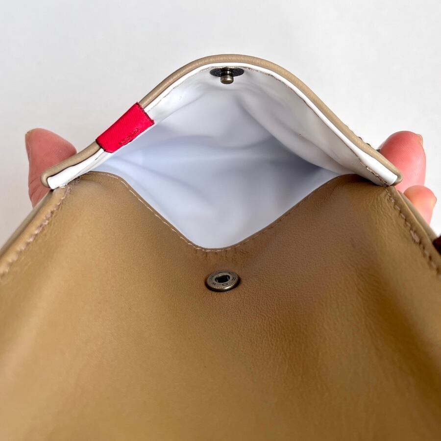 モストロのように経年変化で深い味わいが出る革とは異なり、購入時の美しい色を長く保ちたい方にぴったりの素材です。