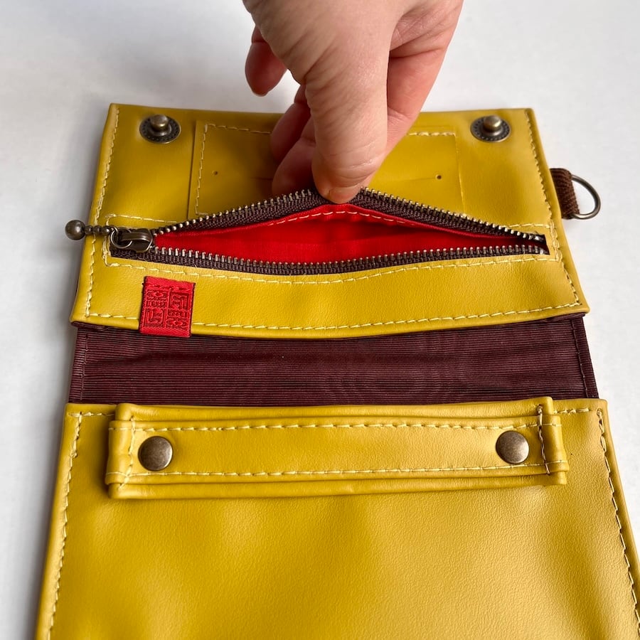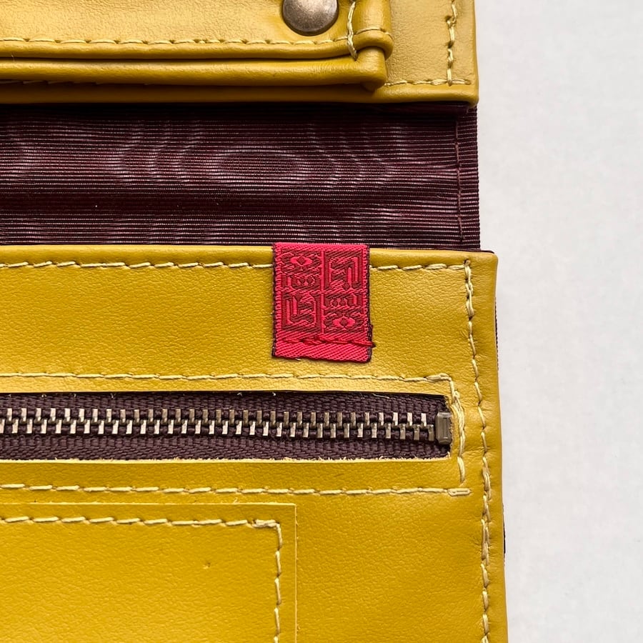 外側に使用している革は、イタリア産牛クローム革「エリート」です。滑らかでキメ細かい上品な質感と鮮やかな発色が魅力の革で、色が変わりにくいのが特徴です。