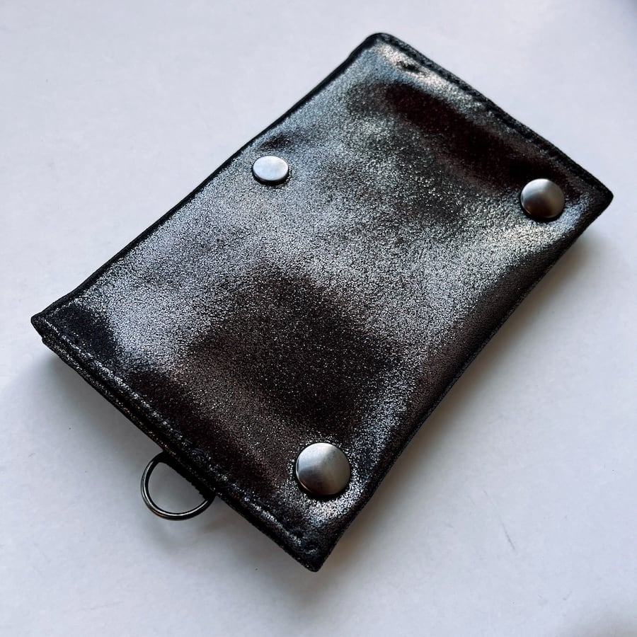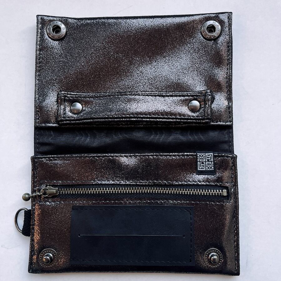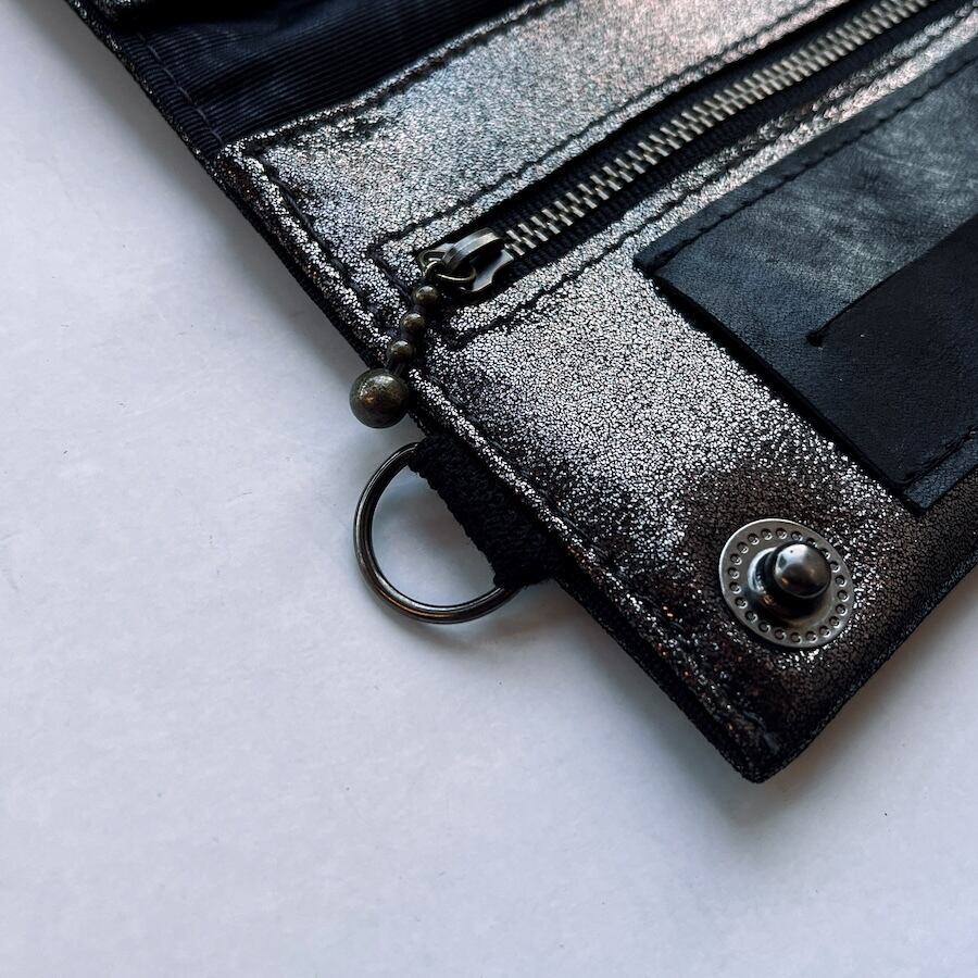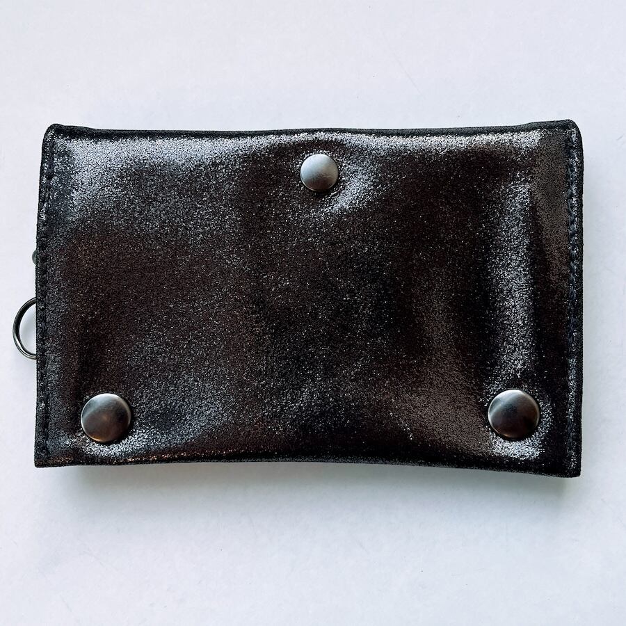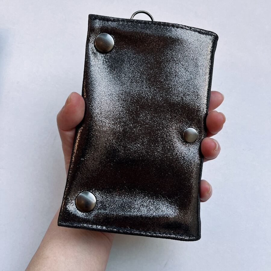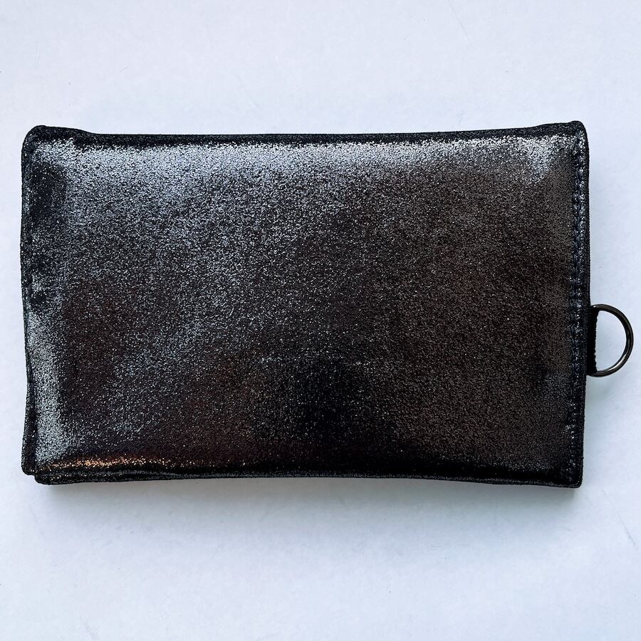 こちらのブラックシルバーレザーは、入荷が限られる希少カラーのため数量限定での販売となります。もっちりとした肌触りで厚みがあり、深みのある黒い光沢がおしゃれな革です。