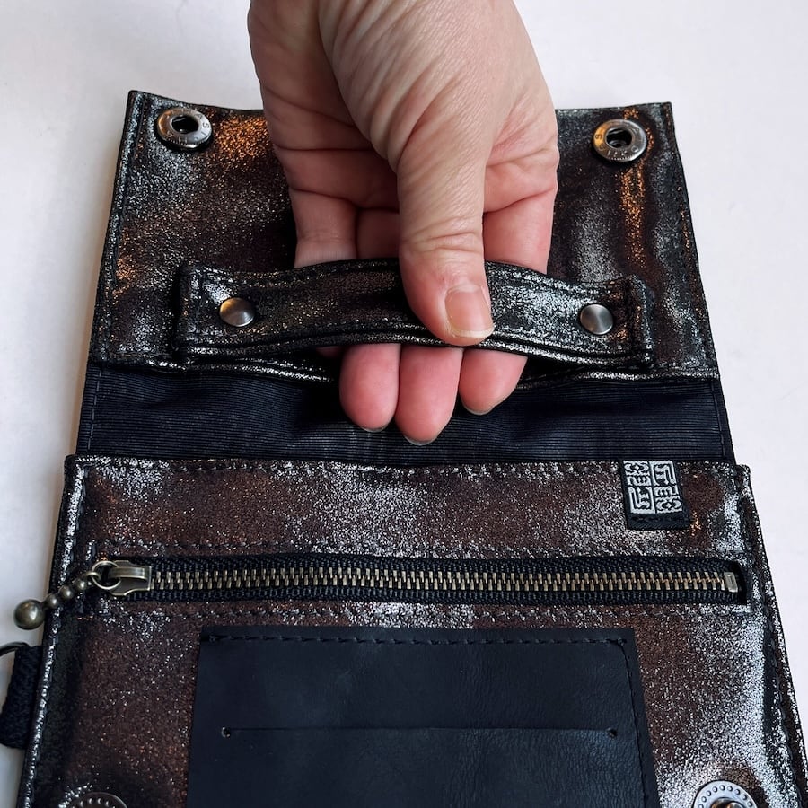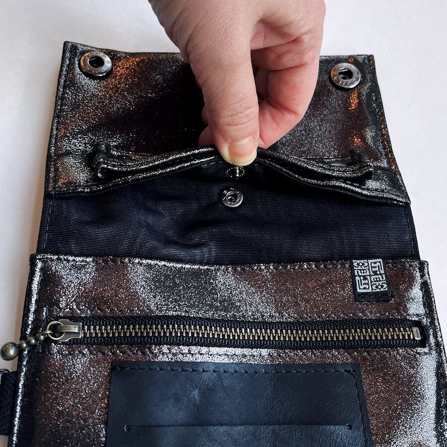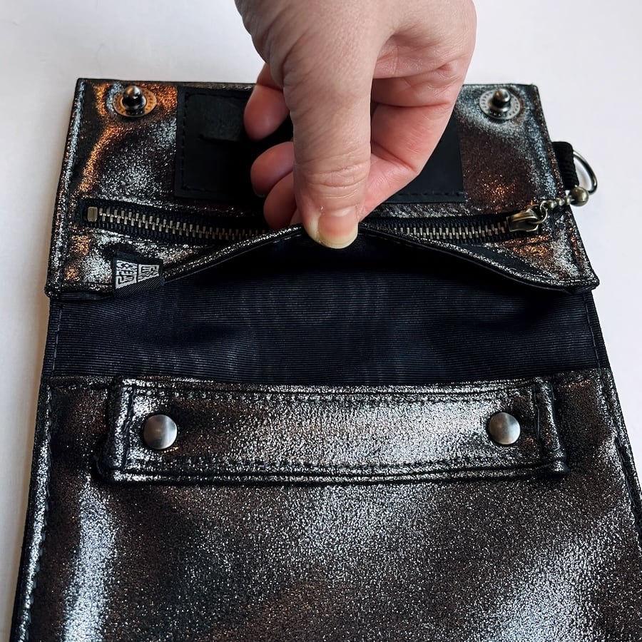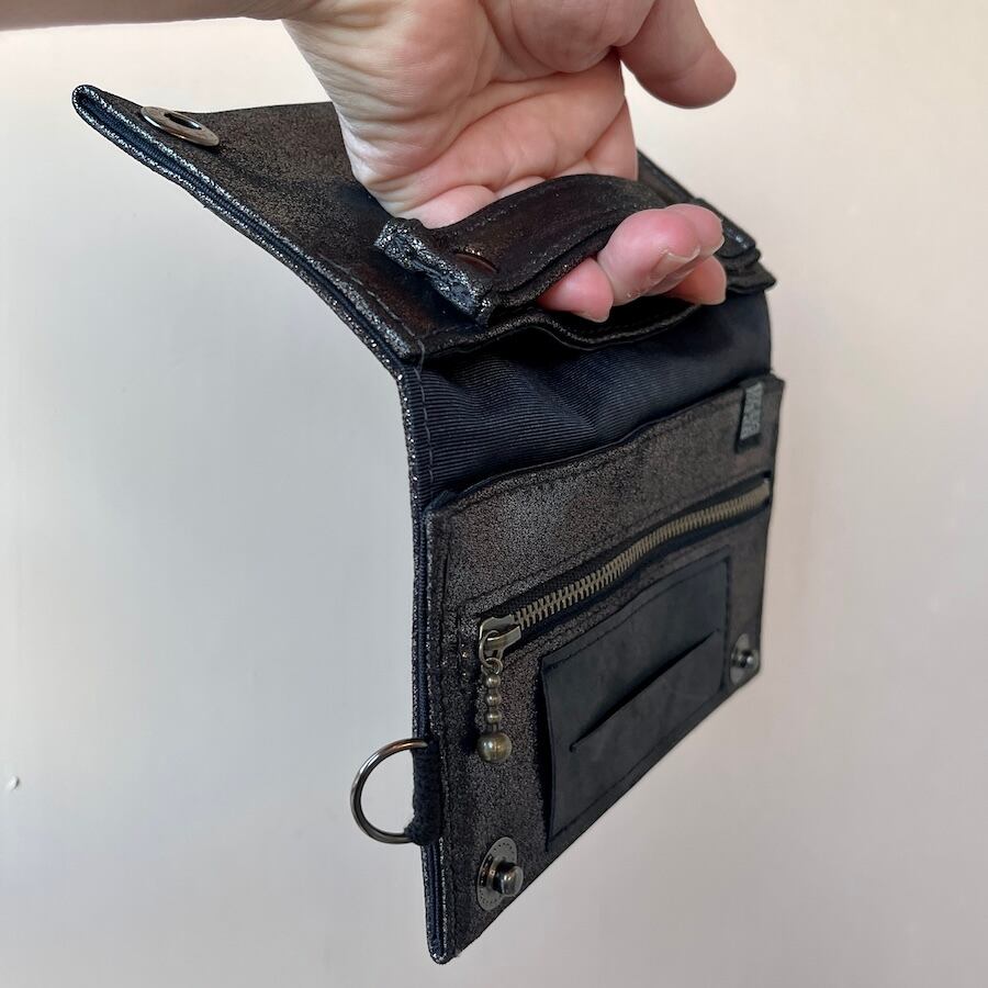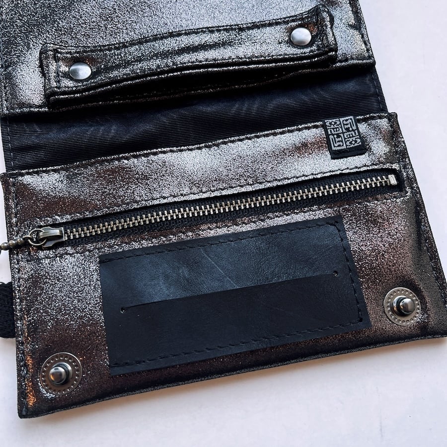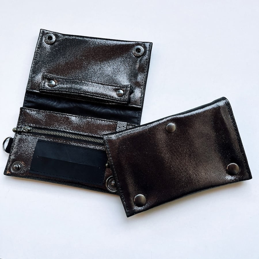 こちらのブラックシルバーレザーは、入荷が限られる希少カラーのため数量限定での販売となります。もっちりとした肌触りで厚みがあり、深みのある黒い光沢がおしゃれな革です。