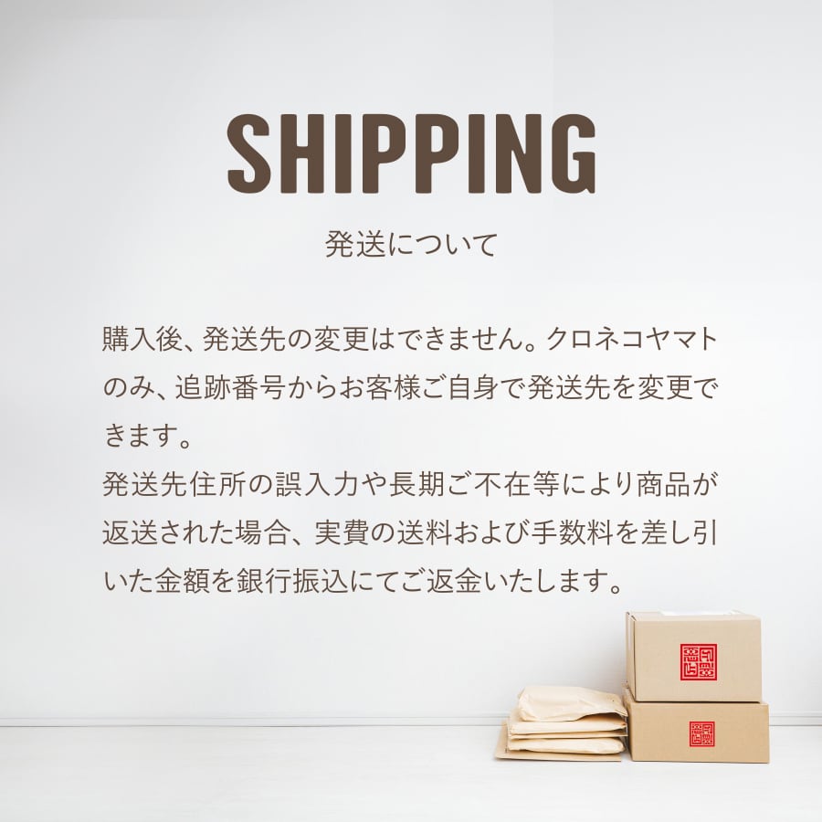 ・購入後の発送先変更は受け付けておりません。
